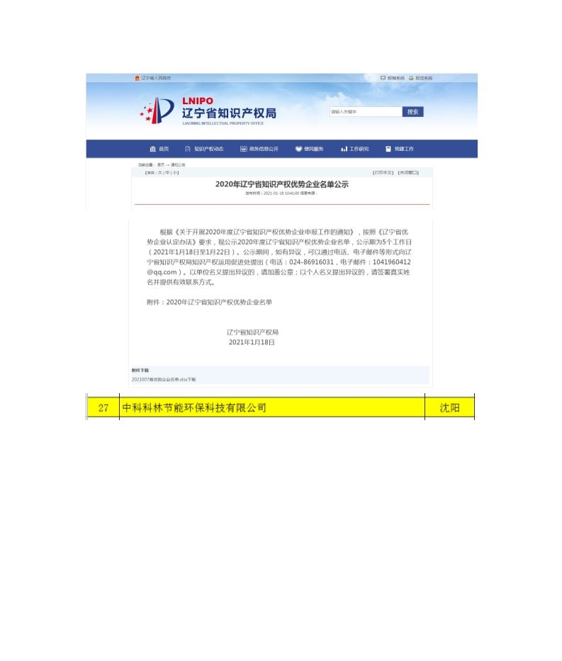 • 恭喜“中科科林“公司被评为”2020年度辽宁省知识产权优势企业”