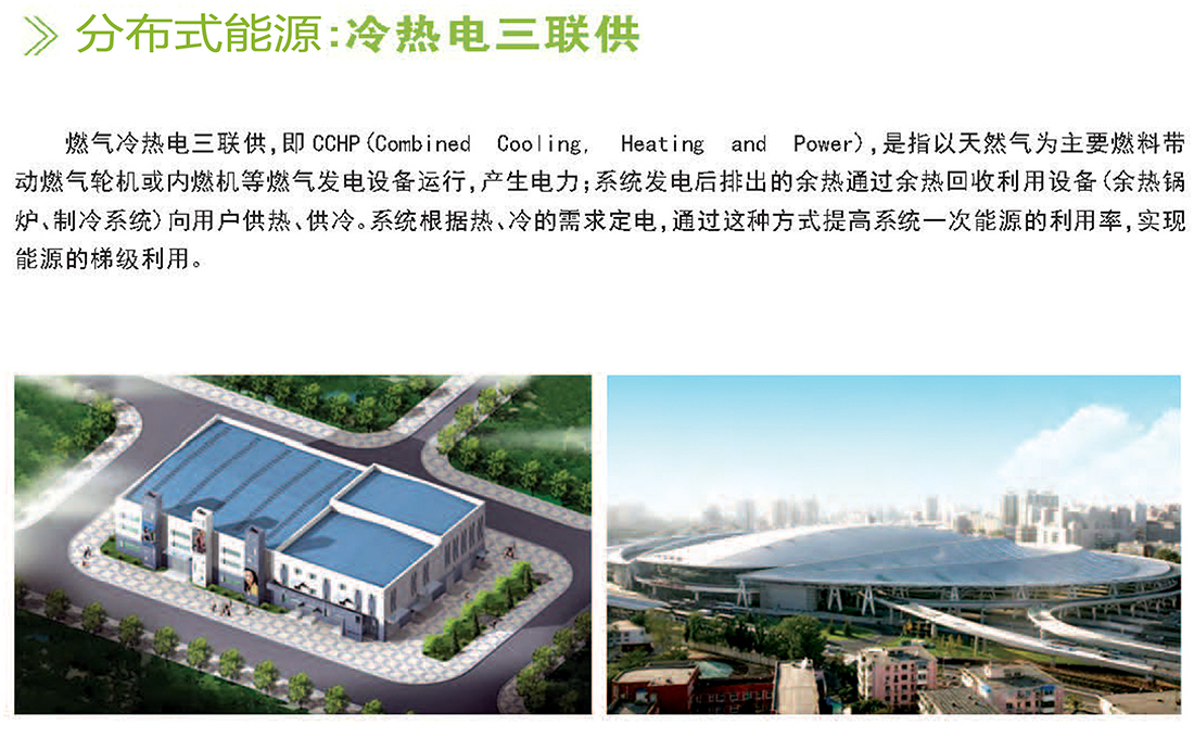 分布式能源是指以小规模、模块化、分散式的方式布置在用户附近,输出冷、热、电三种形式,能源利用率高,大气污染排放少的能源综合利用系统,是一种高效、环保、节能的能源供应方式。