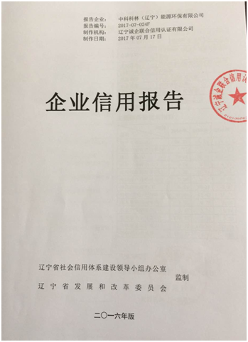 本《企业信用报告》AA级,表明企业信用程度良好,表明企业拥有环保工程专业承包贰级等三项资质,经营管理状况良好,发展前景广阔。该报告有效期一年。